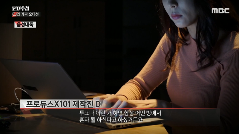 另外,製作組問爆料者關於負責計算投票的PD身份,他們透露只是聽說是從《Produce 48》帶過來的,因為之前節目做事細心,所以交給她了。《PD手冊》曾嘗試聯絡該員工,卻失敗了。也聽說自投票造假之事被揭發後,就再也沒有見到那位女員工了。