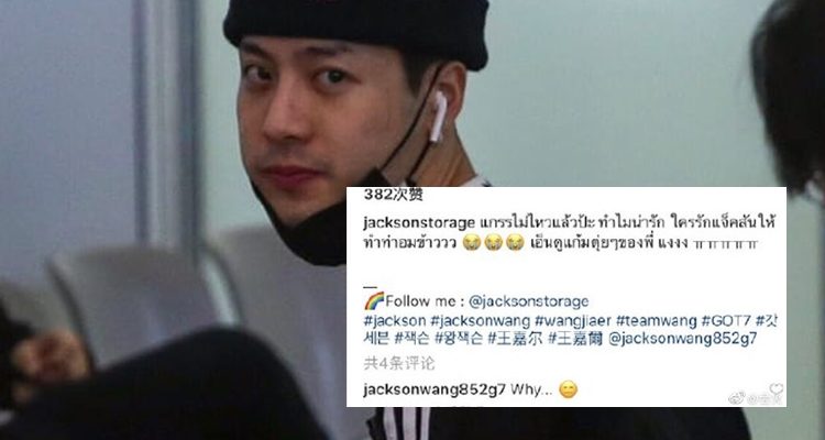 該粉絲專頁上傳了照片後,也獲得了不少人點讚,表示Jackson非常可愛哦!只不過,這張照片底下竟然釣出了Jackson本人留言!他似乎是對照片有點不滿意,只是留了個「Why」,還附上一個無奈的表情呢~