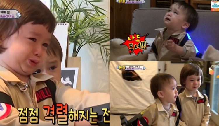 別說威本,大人看到這造型也會被嚇一大跳吧。果不其然,威廉和本特利一見到「女鬼」登場都嚇得大哭了。