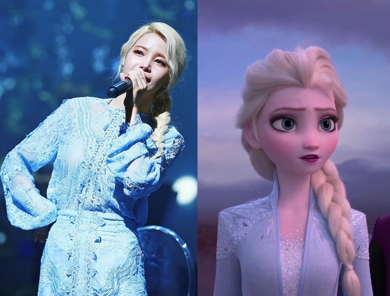 MAMAMOO隊長頌樂出道以來曾嘗試過各種髮色,除了黑髮、棕褐色之外,也有試過染金髮、酒紅色、粉紅色哦!最近,韓網熱論2018年頌樂在個人演唱會的造型,與《Frozen 2》電影主角Elsa女王的造型一樣,因此大家也開始稱呼她為「Elsa」了哦!