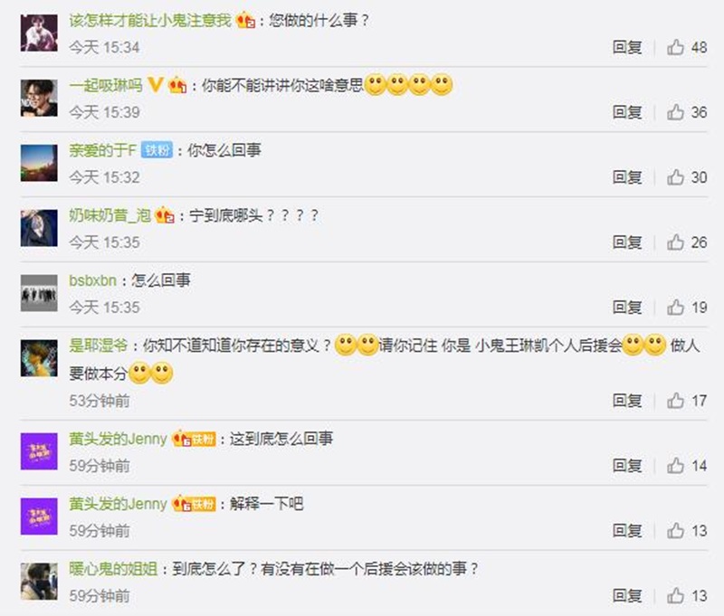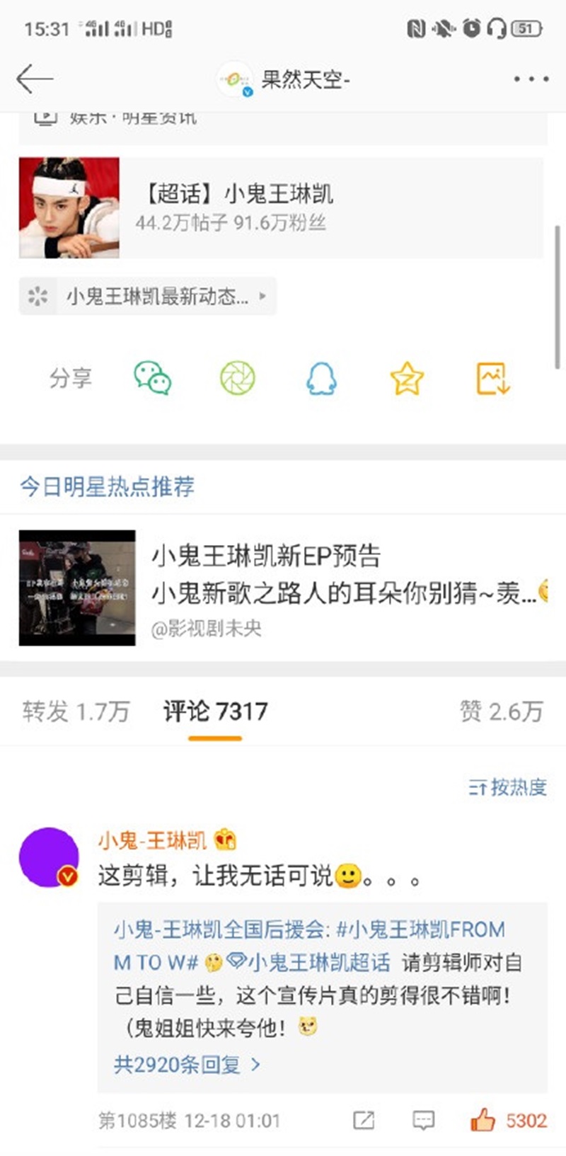 雖然不知道刪博的理由,但這件事成功引起網友們的議論,有網友表示小鬼是在怒懟公司,公司不僅不承認自己的錯誤,還把剪輯問題推給他,所以小鬼才會生氣的發文反擊。小鬼的粉絲們除了湧入果然天空的微博怒罵外,也去到小鬼王琳凱全國後援會要求博主解釋,為什麼他們會說視頻是小鬼自己剪輯的。