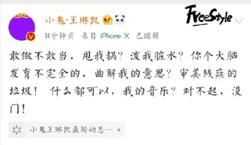 小鬼在留言追加了「什麼都可以,我的音樂?對不起,沒門!」但這條微博,上傳不到十幾分鐘就被刪除了。