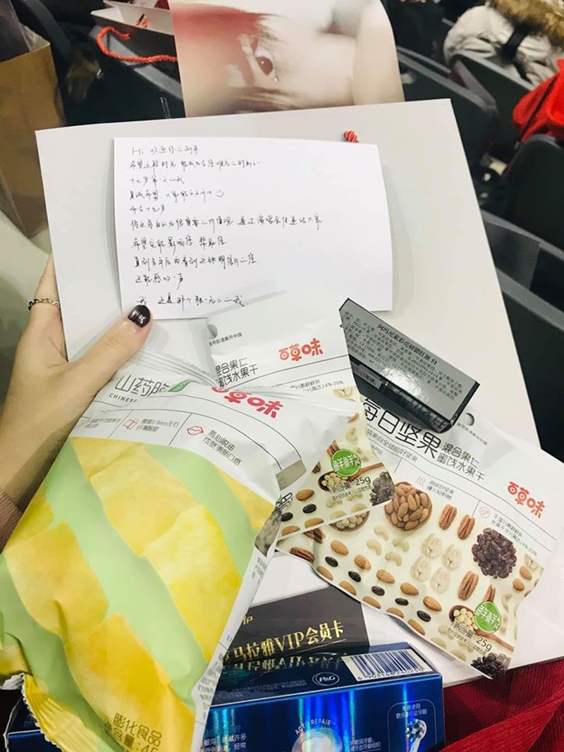 打開禮包一開,更是讓沒到場的粉絲表示無敵羨慕妒忌,裡面放了零食、腮紅液、會員卡、牙膏和年曆卡等。