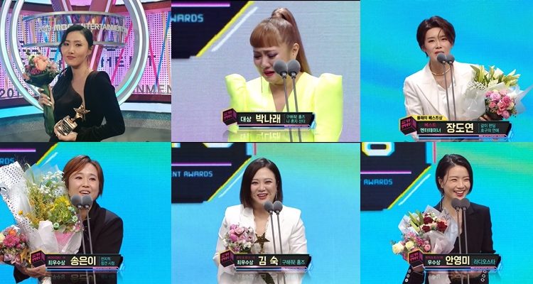 不過,當晚主要的獎項似乎都歸於女藝人哦!不少女藝人在致詞是說了感人肺腑、印象深刻的得獎感言,像是MAMAMOO華莎、張度練、金淑、宋恩伊、安英美,以及今年的大賞得主朴娜萊。以下是她們得獎時的部分感言。