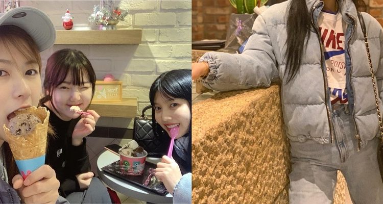 或許是因為小型歌唱比賽中輸了,三人去吃飯時就由Joy結賬啦!她上傳了兩張站在櫃檯前結賬的照片,並寫道:「好吧…我付…」