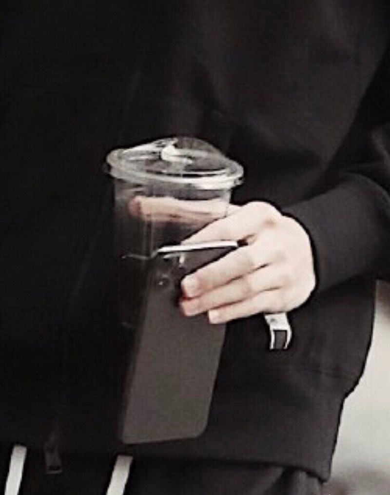 拿了一杯星巴克再握手機!重點是:居然只拿手機頂部?對自己的大手很有自信,不擔心滑落就是了!