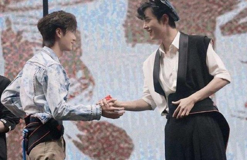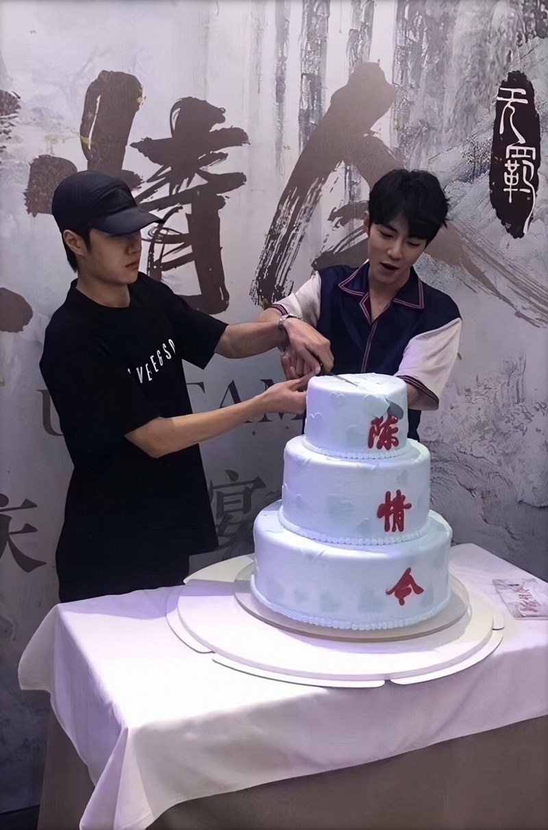 《陳情令》慶功宴時,兩個人一起切蛋糕時,王一博的大手也很明顯啊!
