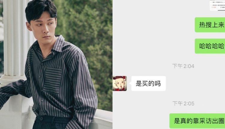 張雨劍得知自己登熱搜後,第一反應令網友都笑翻了,他的工作室團隊上傳了一張聊天截圖,內容是工作人員告知張雨劍登熱搜,張雨劍當下的反應竟是問工作室熱搜是買的嗎?