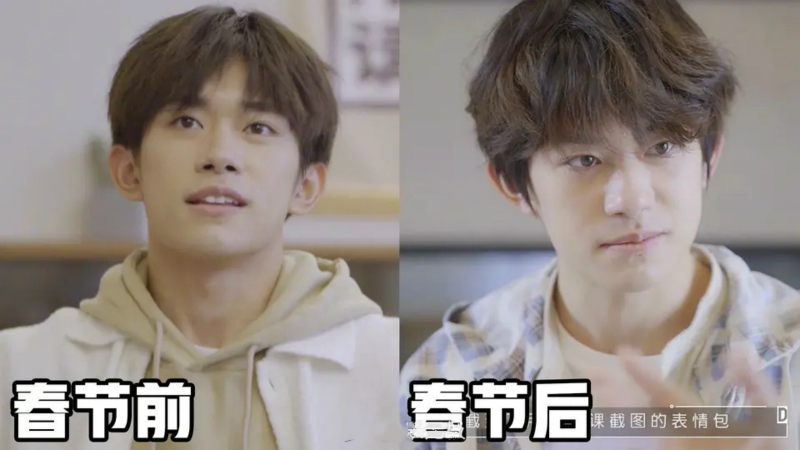 也有網友製作了易烊千璽在春節前和春節後錄製《朋友請聽好》的對比圖,來看看吧!