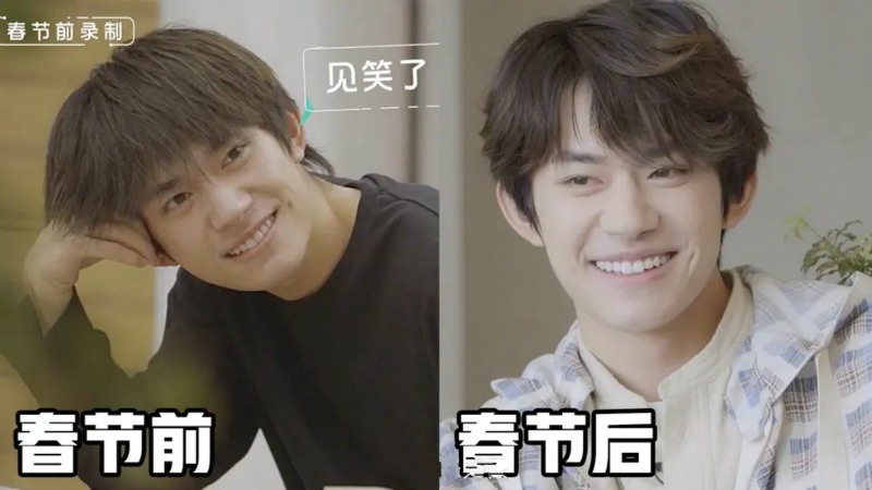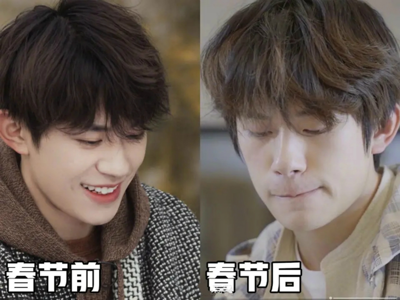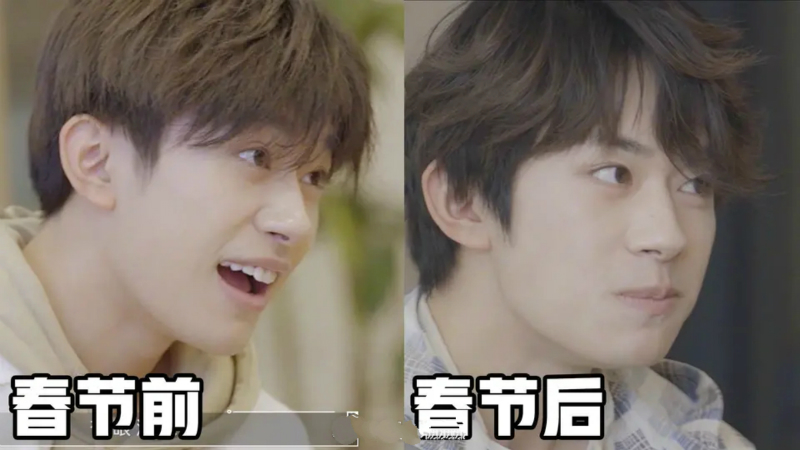 也有網友製作了易烊千璽在春節前和春節後錄製《朋友請聽好》的對比圖,來看看吧!