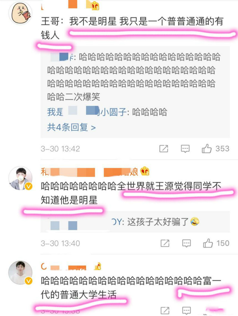 針對王源說同學都不知道他是大明星這點,粉絲們都說,這應該只是王源自己的想法而已,畢竟身邊的同學那麼厲害,一定會挖個究竟。就算一開始不知道王源的分身,但相處久了肯定就會發現,原來王源在華人娛樂圈是這麼有名的藝人!只是同學們都沒有跟王源說而已啦!還有人說“全世界就王源覺得同學不知道他是明星”,真的是太實錘了!