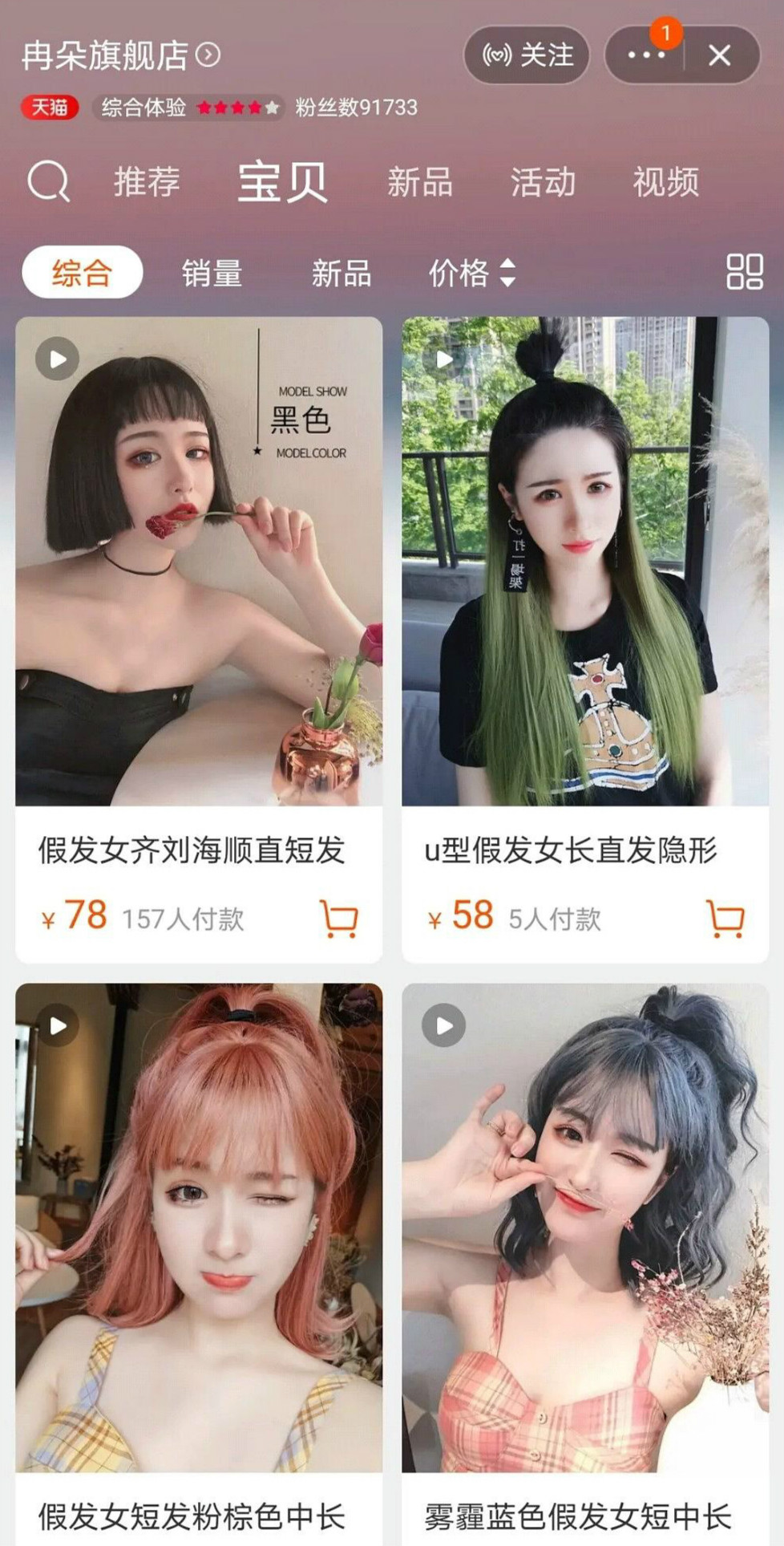 盒子上的“冉朵旗艦店”店裡賣的都是漂亮妹妹最喜歡網購的假髮~