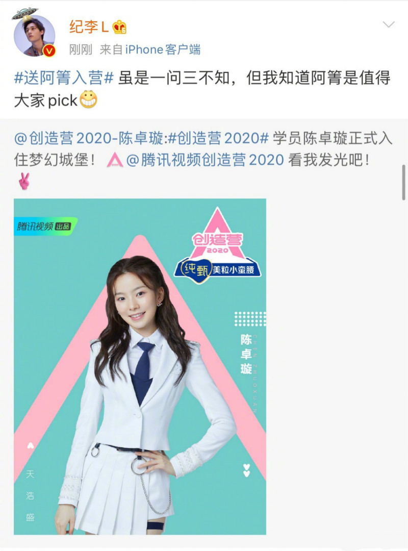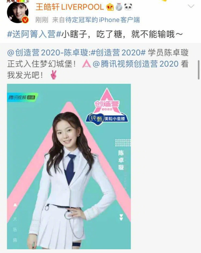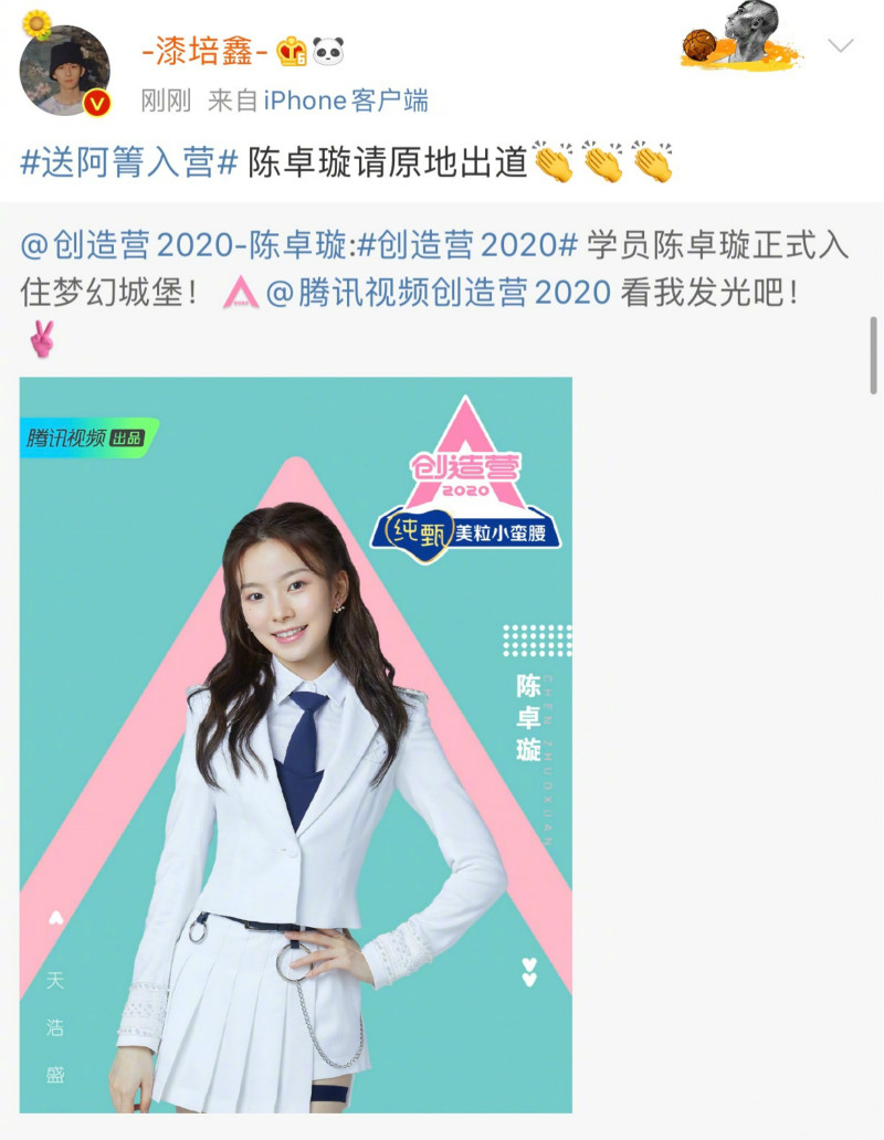 #送阿菁入營!嗯,是很有愛的劇組沒錯了!也希望陳卓璇這次在《創造營2020》可以拿到好成績,阿菁衝鴨~陳卓璇加油~
