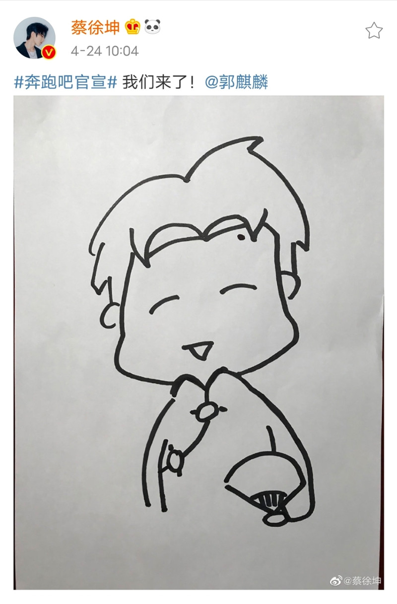 蔡徐坤官宣正式加入跑男!! 《奔跑吧》集結完畢!蔡徐坤官宣正式加入跑男!! 星聞綜藝 By 容小編 Last updated Apr 24, 2020 Share 官宣啦!!蔡徐坤解鎖跑男新身份!正式官宣加入跑男!!加盟《奔跑吧》!之前在在網上就流傳著《奔跑吧》最新主持人的剪影,大家也都做了對比圖,覺得這剪影就是最近在《青春有你2》擔任PD的蔡徐坤! 點我看:《奔跑吧》最新主持人剪影曝光! j 24日,蔡徐坤在微博上就分享了一張圖,艾特了郭麒麟說 #奔跑吧官宣# 我們來了! 這張手繪圖也太可愛了吧! 看著蔡徐坤的名牌!已經可以想象大長腿蔡徐坤在“撕名牌大戰”時的激烈情況了!! 圖來源:微博 奔跑吧蔡徐坤 Share