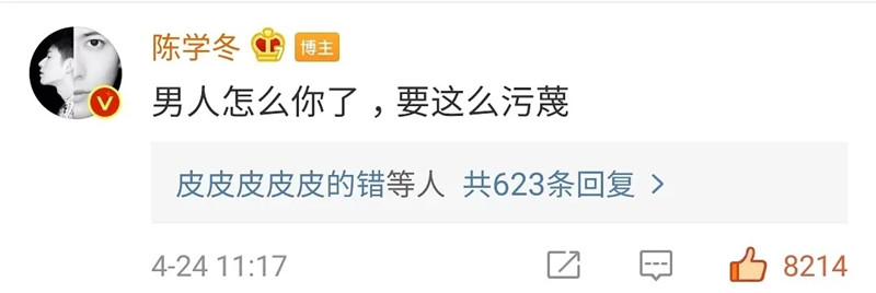 陳學冬還在評論中補上“男人怎麼你了,要這麼污衊”
