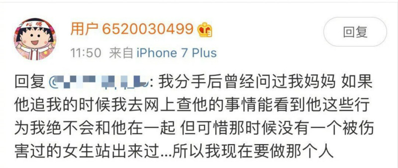 周揚青也表示:「我分手後曾經問過我媽媽,如果他追我的時候,我去網上查他的事情能看到他這些行為,我絕對不會和他在一起,但可惜那時候沒有一個被傷害過的女生站出來過,所以我現在要做那個人。」