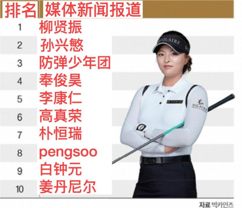有看《Running Man》的對第一名的柳賢振一定不陌生,是韓國人十分喜歡的棒球選手啊!孫興慜則是目前超有人氣的足球選手!值得一提的是,我們可愛的Pengsoo居然上榜啦!其實這也不奇怪,畢竟2019年真的稱得上是Pengsoo年啊!