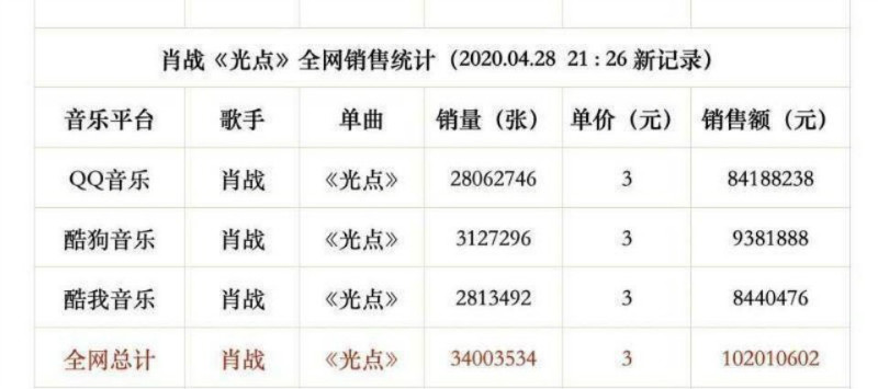 而在上線93小時35分鐘之後,也就是28號晚上9點35分,《光點》全網銷量破3333萬張,銷售額破億(人民幣),成爲全網最快銷量破億的單曲!