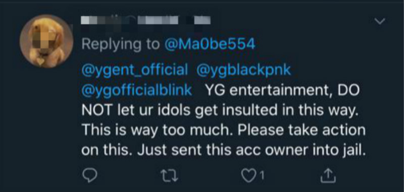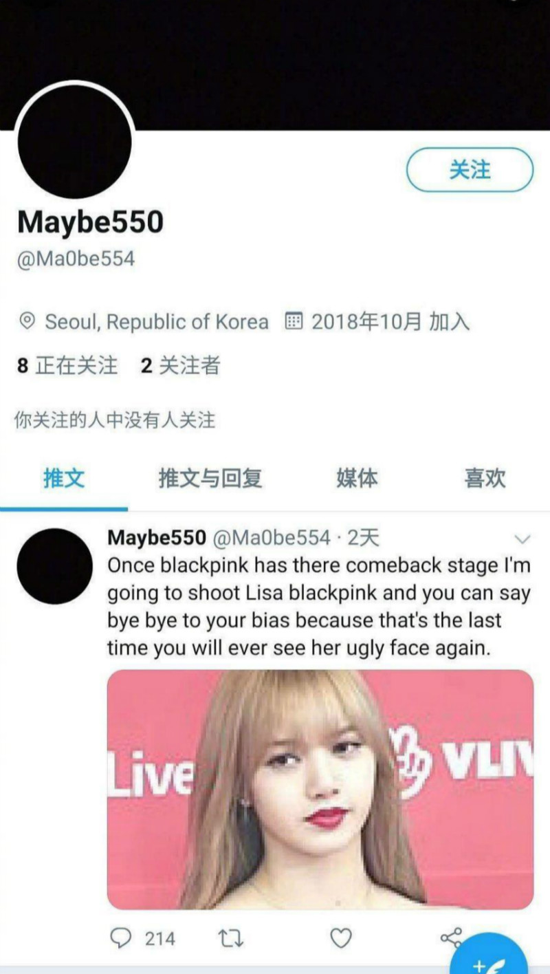 Lisa接死亡威脅!粉絲呼籲官方保護小莎! Lisa接死亡威脅!粉絲發起呼籲官方保護小莎行動! 星聞 By 歐巴是我的 Last updated May 3, 2020 Share 有網友在推特上傳了揚言將殺掉Blackpink Lisa的推文,表示只要Blackpink回歸舞台,他就會殺掉Lisa。 目前該推特賬號已經被推特凍結。 但粉絲開始艾特YG官方賬號,以及在泰國駐韓國大使館賬號,希望他們對此事情有所關注及警惕。 希望每一個在網絡上敲下任何訊息的人都記得,你必須為你說的每一句話負責,這樣子的發言是非常惡劣的,希望相關單位可以採取一定的行動。 BLACKPINKLISA Share