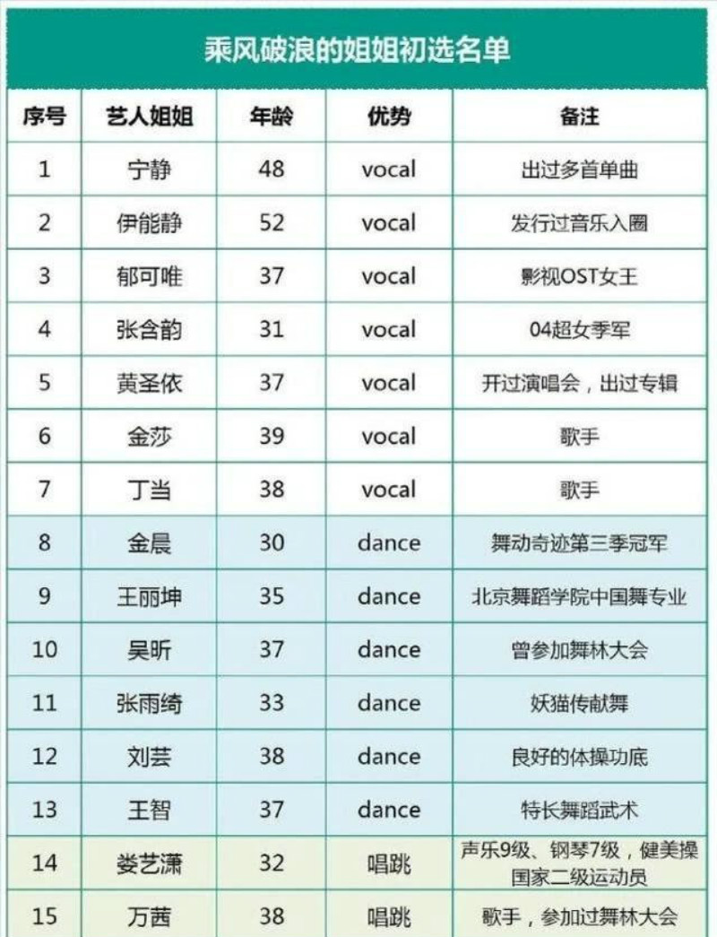 最近成團的綜藝節目成績太過亮眼,除了有已經播放著的《青春有你2》和《創造營2020》,還有《少年之名》!不過,再怎麼有話題,也不會有這檔節目來的有話題!沒錯!就是《乘風破浪的姐姐》!!網傳將出演的姐姐名單如下:其中就包括了丁當、金沙、伊能靜、許飛、吳昕、鬱可唯、婁藝瀟…等等。