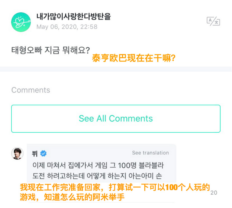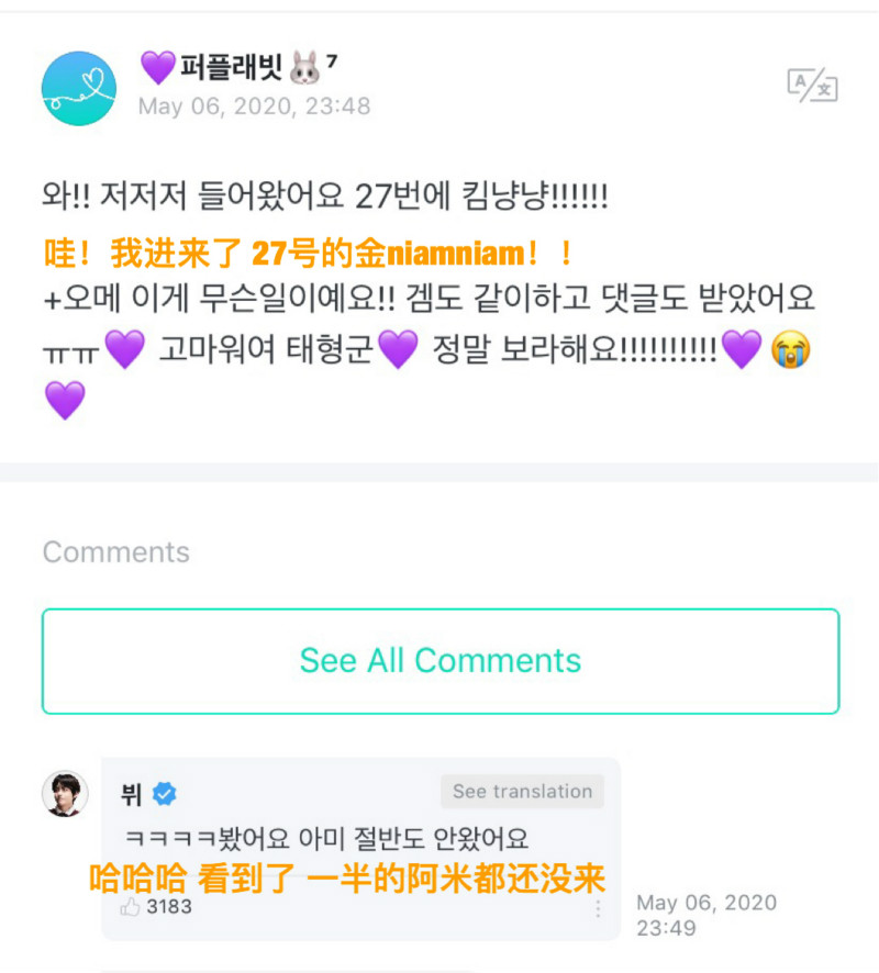 先來看看金泰亨和ARMY接下來的對話吧!
