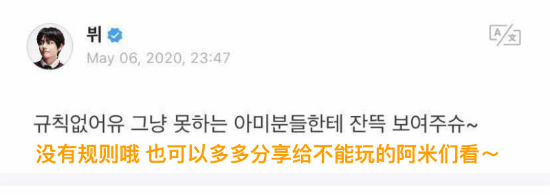 接著金泰亨與阿米們繼續聊天還表示讓成功進入房間的阿米要多分享給沒能進來的阿米看確定嗎?因為遊戲中畫面真的太爆笑啦!!