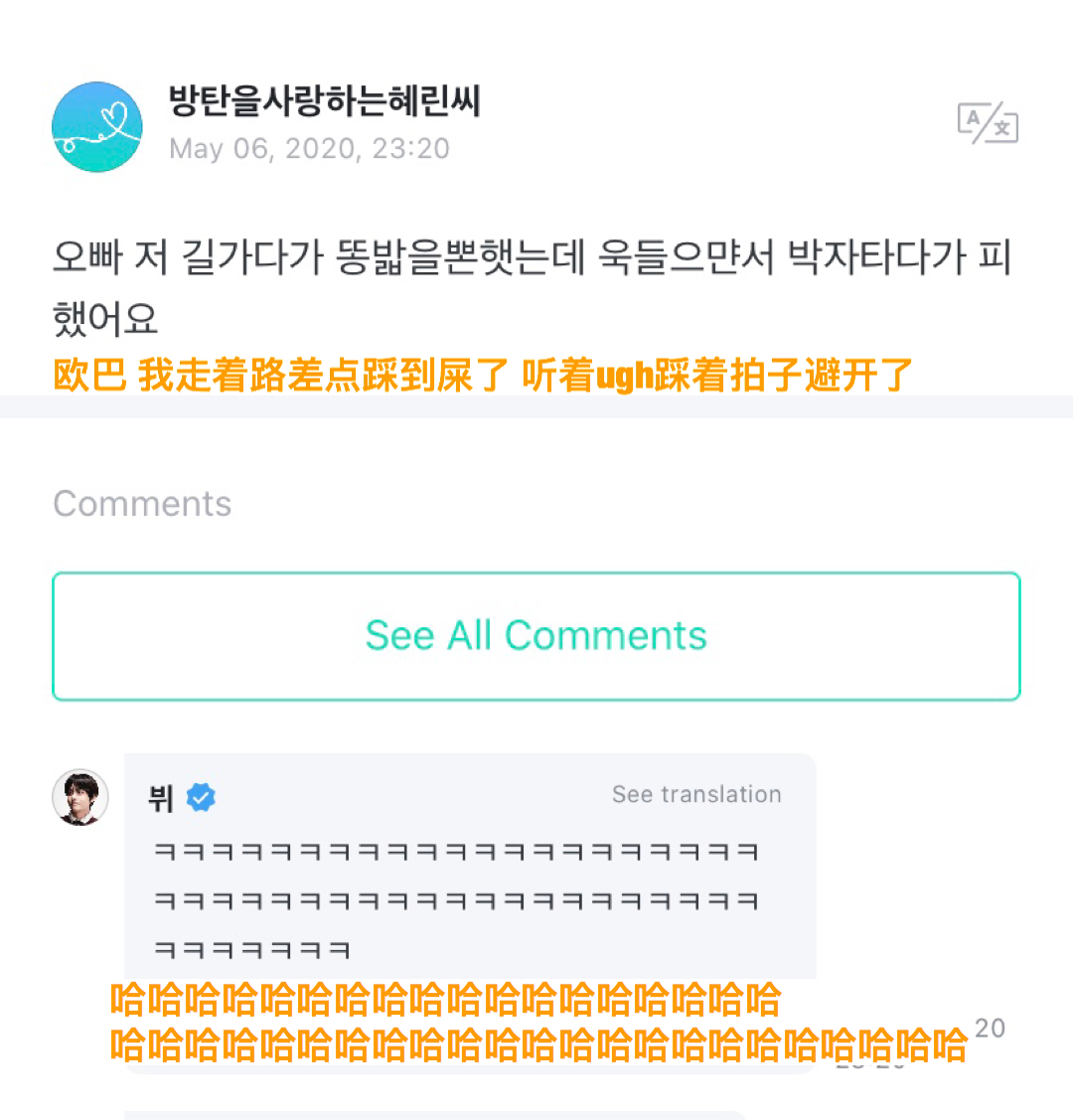 先來看看金泰亨和ARMY接下來的對話吧!