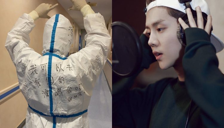 穿上了防護衣後,該名醫護人員也在背後寫了“我可以去看你的演唱會嗎?”還特地艾特了鹿晗。