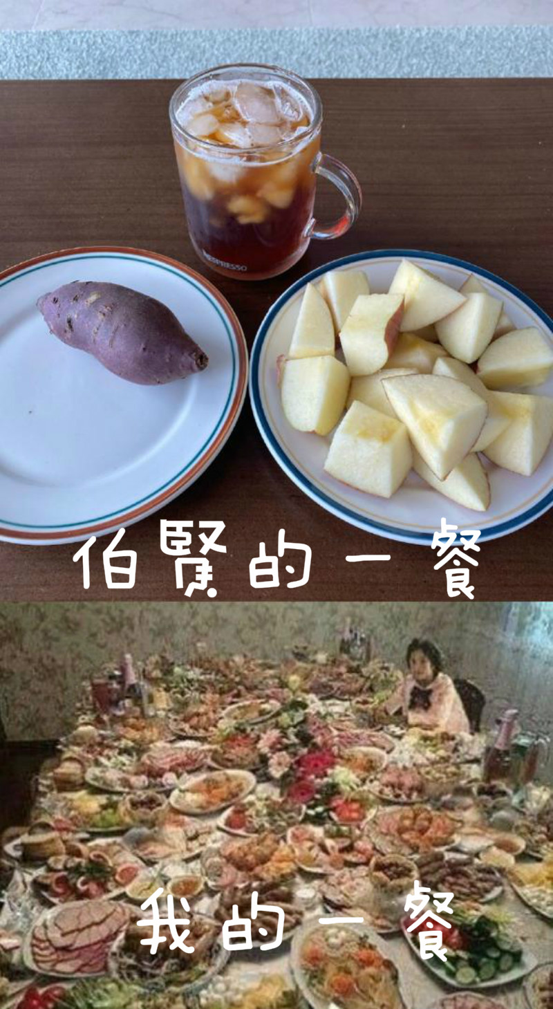 更有粉絲做了「邊伯賢的一餐」vs「我的一餐」的對比圖,太真相了!