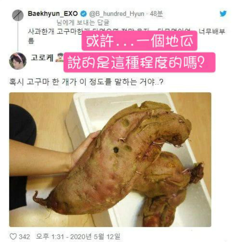 「伯賢啊⋯⋯是這麼大的地瓜嗎?」