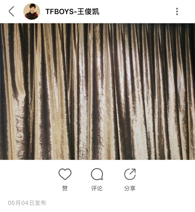 當被問到為什麼會在綠洲分享這張照片時,王俊凱就搞笑的回答:因為它想出道!王俊凱還表示目前窗簾有一點人氣了!