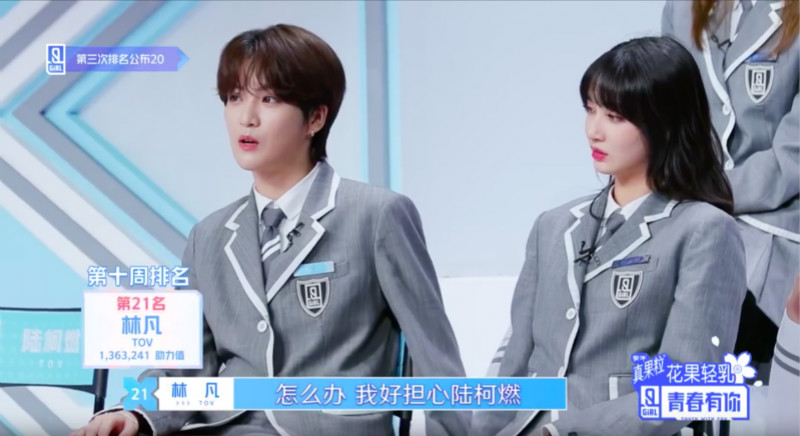 在宣佈最後一個得到進入總決賽的訓練生是曾可妮,而林凡止步第21名時,來自同公司的陸柯燃再也忍不住眼淚哭了…