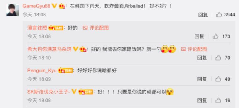 然後又在評論區表示:「在韓國下雨天,吃炸醬麵,聽ballad!好不好!?」粉絲紛紛秒回好好好!畫風在這一樓都還蠻溫馨的~
