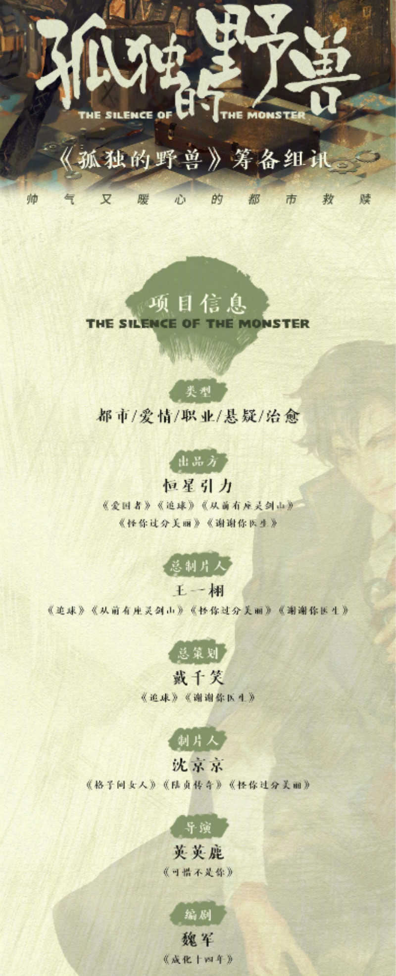《孤獨的野獸》講述的是開鎖師和鑒定師的故事,早在之前就有消息說即將要拍成劇,但一直都沒有消息。