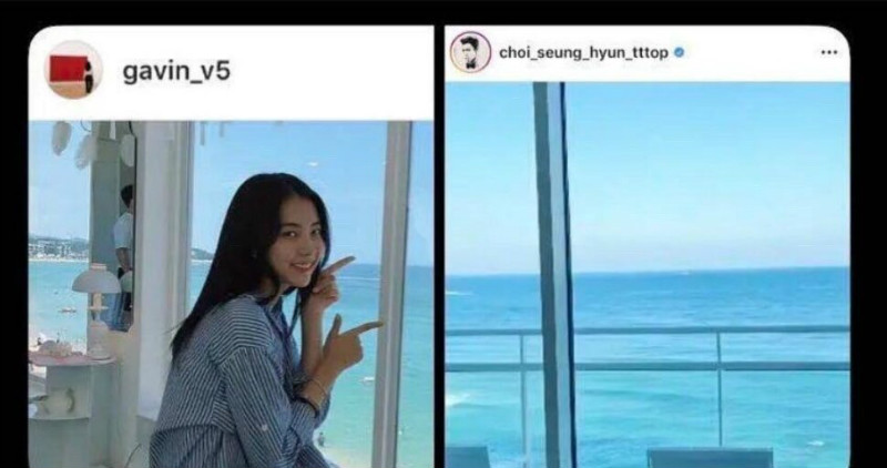 另外崔勝鉉曾經曬過的海景房,金佳彬同樣也有曬過。注意看,就連窗戶框都是一樣的,這的確很容易引人誤會呢!