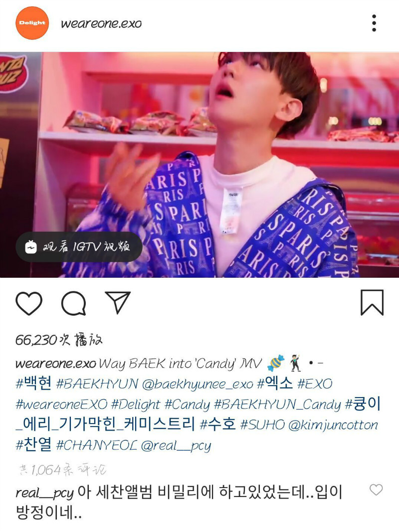 在EXO INS公開的最新伯賢《Candy》MV拍攝花絮中,來了”隱藏的客人“,那就是隊員燦烈和未入伍前的小隊Suho啦!