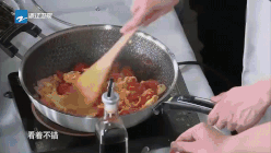 在《奔跑吧》中原本是帥氣的翻鍋炒,結果不過三秒,番茄就被「翻出鍋」了!