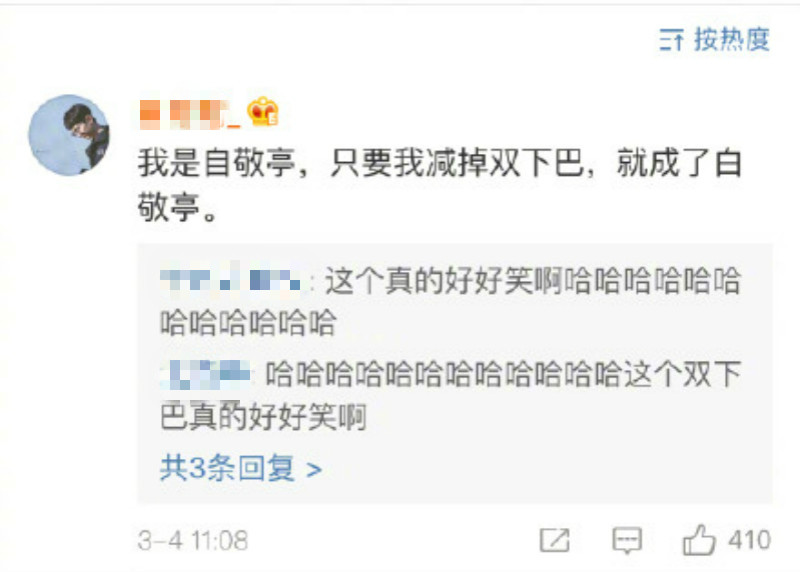 「我是自敬亭,只要我減掉了雙下巴,就成了白敬亭」