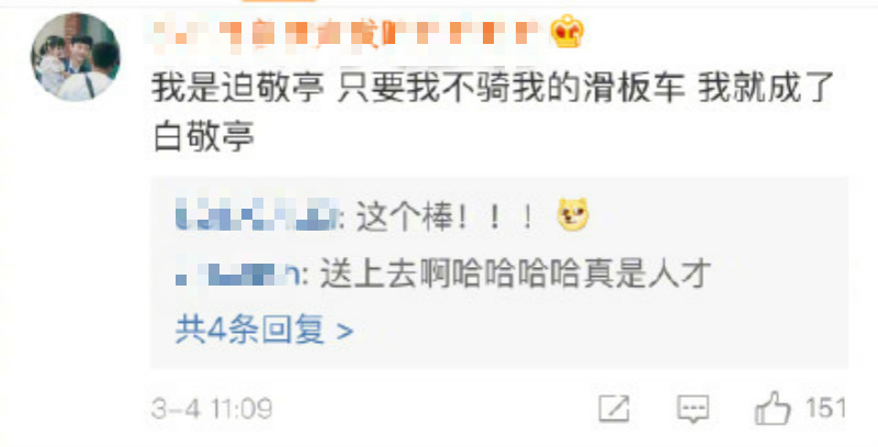「我是迫敬亭,只要我不騎我的滑板車,我就成了白敬亭」