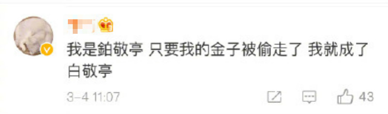 「我是鉑敬亭,只要我的金字被偷走了,我就成了白敬亭」