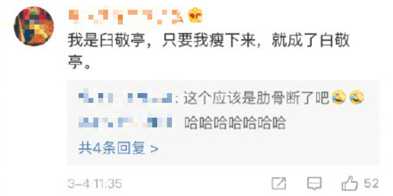 「我是臼敬亭,只要我瘦下來,就成了白敬亭」。結果被神吐槽:這個應該是肋骨斷了吧!