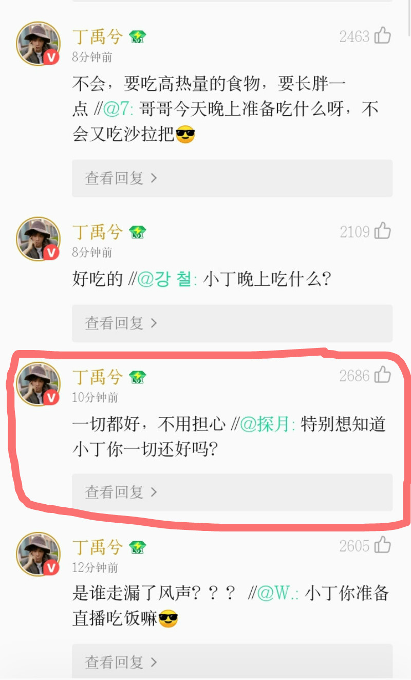 而今晚也有粉絲問:「特別想知道小丁你一切還好嗎?」我們的丁禹兮也特別回復了這位粉絲,表示:「一切都好,不用擔心。」嗚嗚嗚,隔著熒幕都感受到了他的溫柔和善意啊!