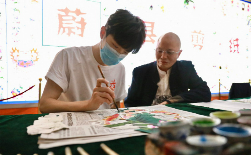 肖戰也參觀了蔚縣的剪紙博物館,甚至還學習起了蔚縣的剪紙工藝!對於身為設計師的肖戰來說,這種體驗應該相當有趣吧!而你留意到了嗎?肖戰穿著的,是他親自設計的公益T恤哦!