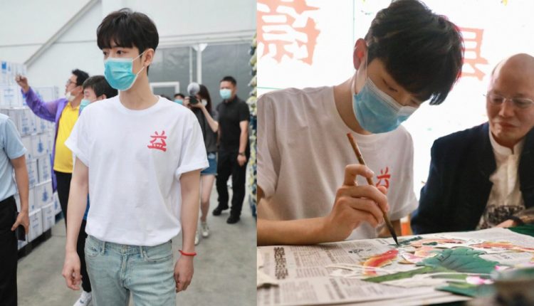 這不是肖戰第一次參與公益,之前他甚至把自己的直播初體驗,獻給了助力湖北企業的公益活動直播間。當時他就解釋了自己設計的公益T恤的logo設計概念。