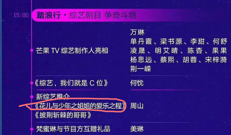 嗚哇!真的是活久見了啊!在芒果TV最新的招商大會上, 官宣了《乘風破浪的姐姐》第一個團綜,那就是《姐姐們的愛樂之程》!而在分派給媒體的行程表上,這個節目的完整名稱是《花兒與少年之姐姐們的愛樂之程》!!