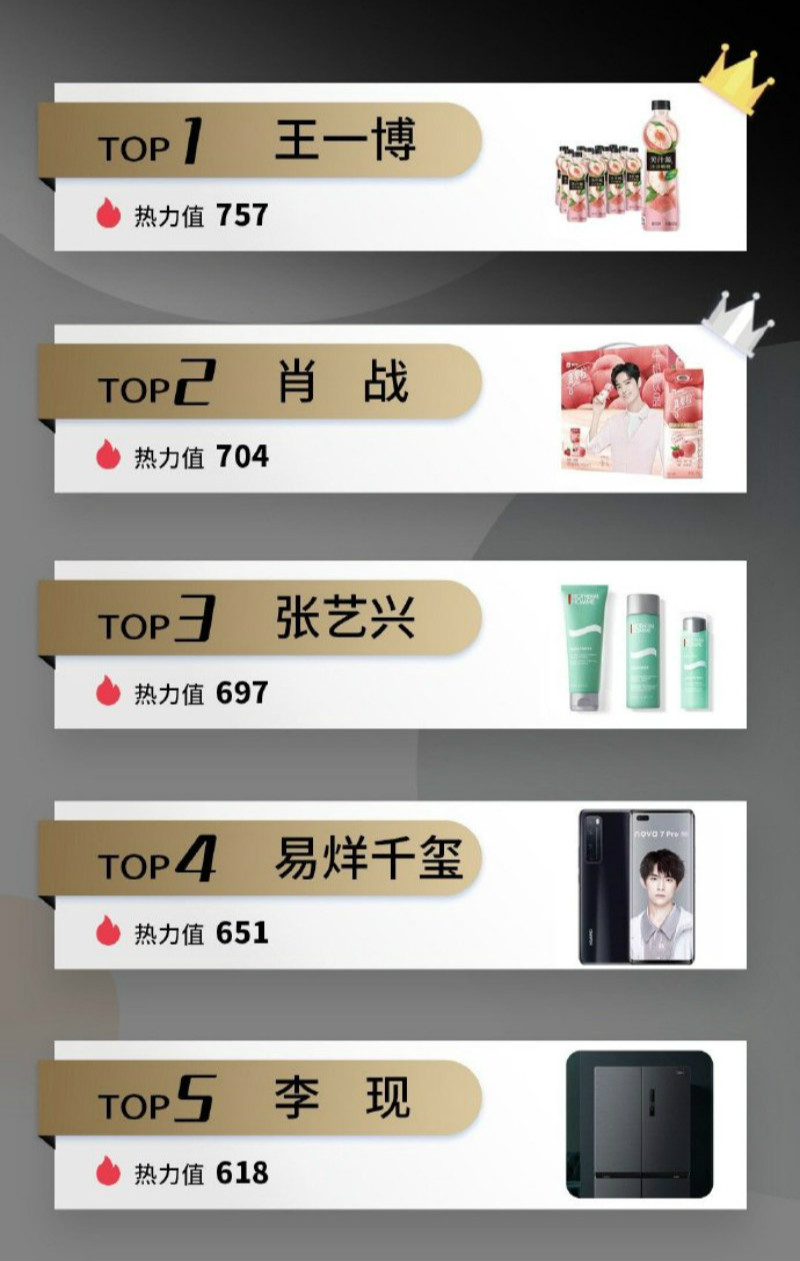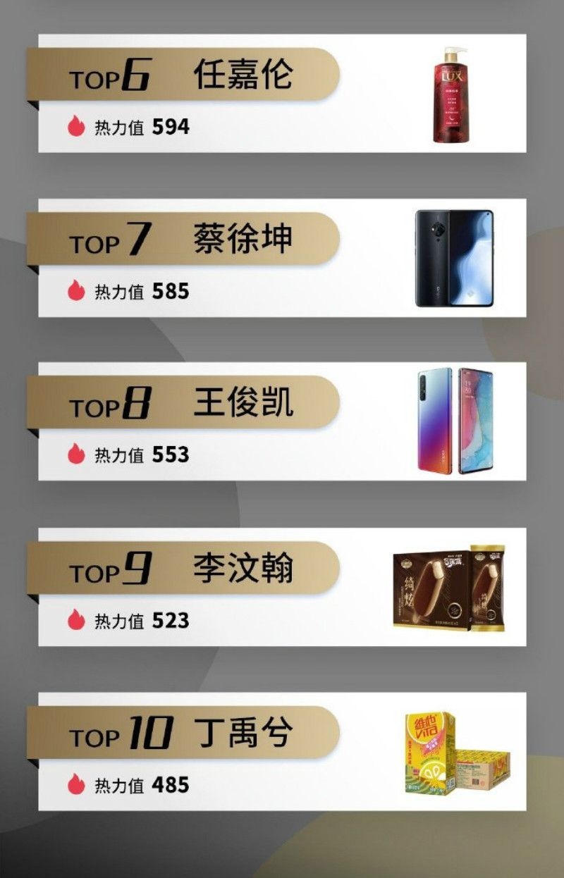 618成績單出爐!最能帶貨的男明星Top 10榜單公開!你家偶像上榜了嗎?