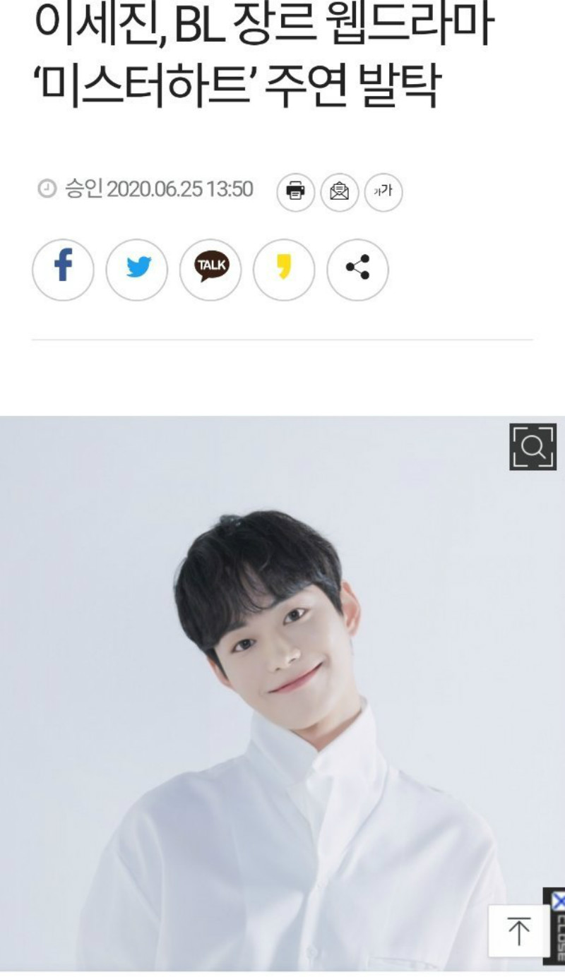 而25號韓國iME也宣佈:「演員李洗賑將出演韓國首部BL題材網絡電視劇《你的目光所及之處》制作組後續作《Mr. Heart》。」這部劇講述了馬拉松希望之星和領跑者之間的激情(這個重點畫起來,顆顆顆)、愛情和友情的電視劇。李洗赈將飾演在困難的環境中也不失笑容的短跑選手河尚宇(音)一角。