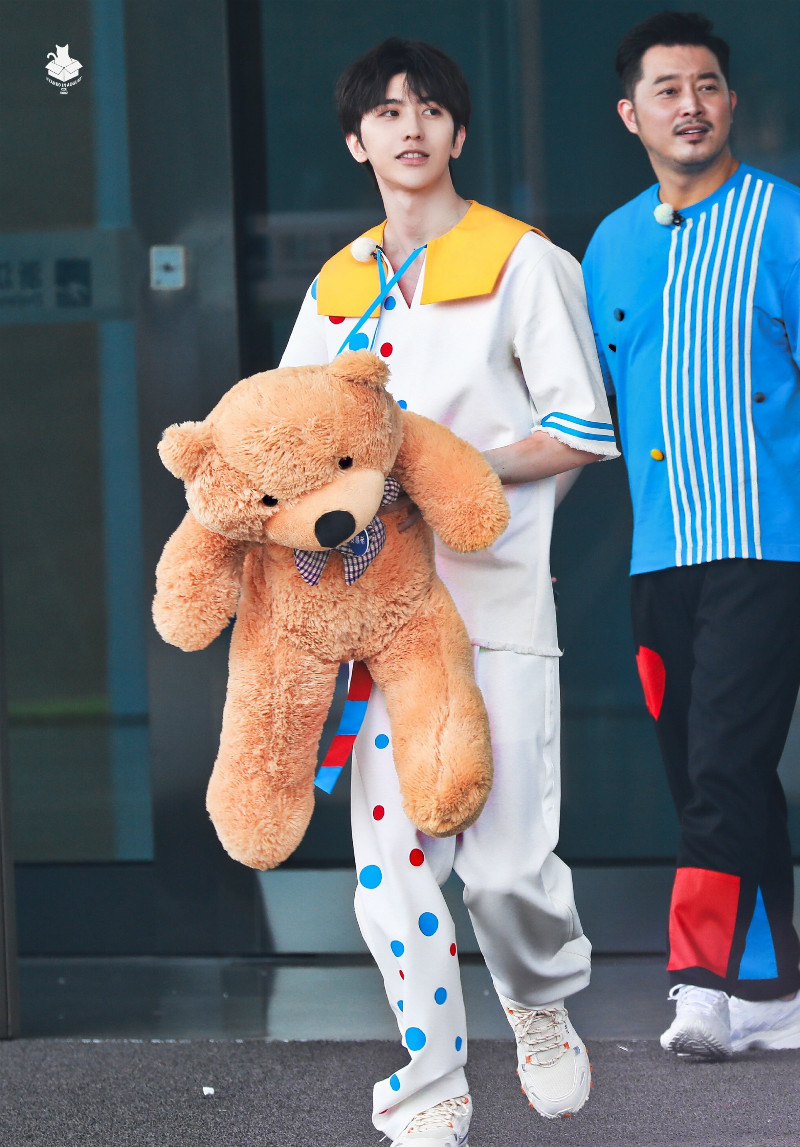 以小丑裝錄製最新《奔跑吧》的蔡徐坤真的很寵粉,發現很多粉絲在圍觀,於是打算將手上的熊拋給粉絲!他來啦他來啦,他帶著可愛的小熊來啦!