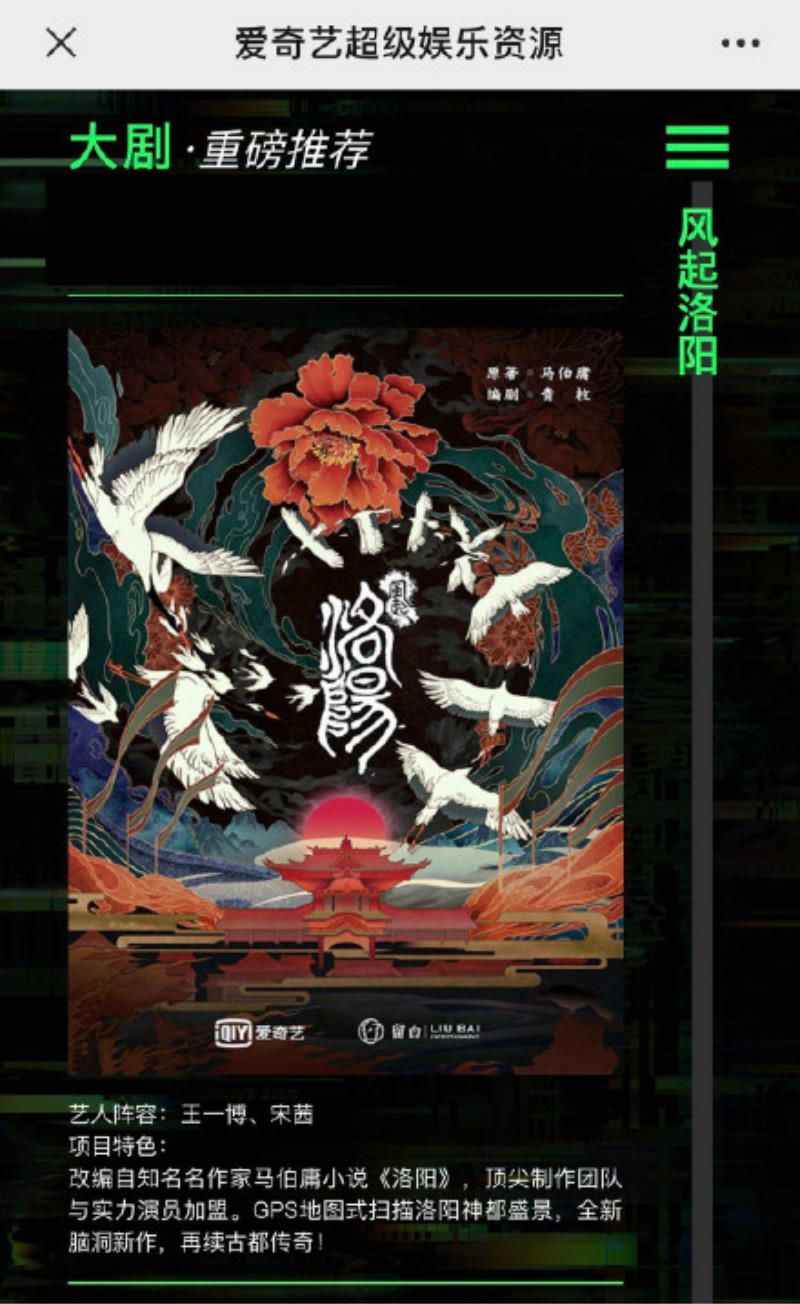 嗚哇!在9號下午舉行的《2020愛奇藝iJOY夏日悅享會》上,愛奇藝官宣了即將開拍曾寫過《古董局中局》以及《長安十二時辰》的馬伯庸作品《洛陽》,所改拍而成的《風起洛陽》!