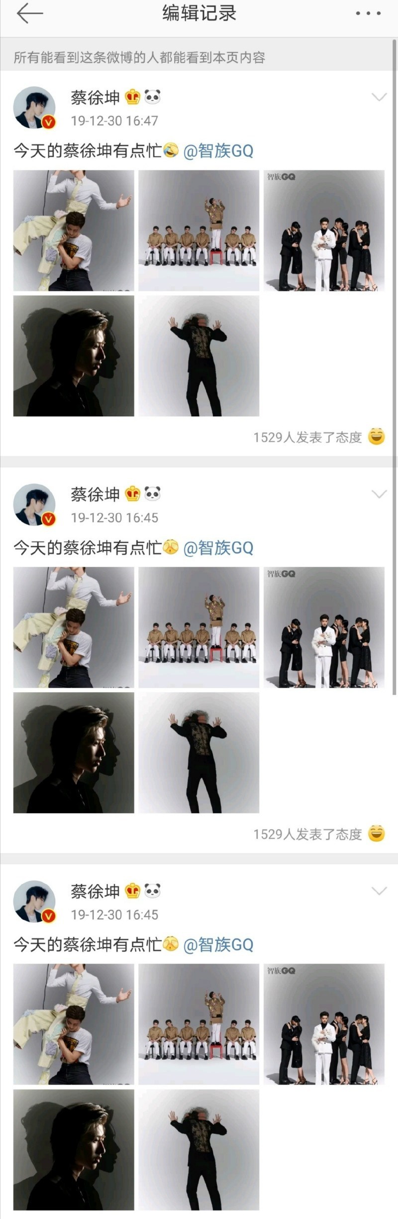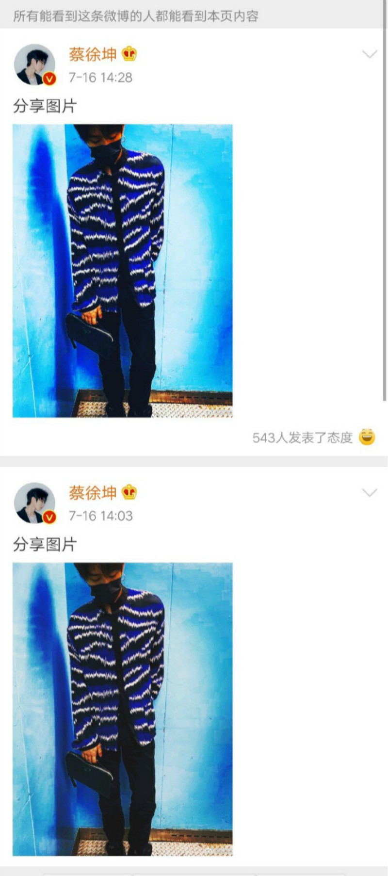 沒錯,你的嚴謹小能手蔡徐坤又上線啦!!!16號下午蔡徐坤發博,更新了自己今天的造型,先來看看!結果沒想到發了25分鐘之後,你沒猜錯,我們的坤坤又再度編輯了貼文,先來看看前後有什麼不同?